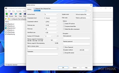 5. Compressing Files: To compress files, open the 7-Zip application. Navigate to the files/folders you want to archive. Select them, then click the “Add” button. Choose your desired archive format (e.g., .7z , .zip ), set compression level, and add a password if necessary. Click “OK”.
