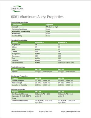 Now for the good stuff: the A6061-H datasheet PDF ! This document is your ultimate resource for detailed information about the alloy. You can usually find these datasheets from aluminum suppliers, manufacturers, or industry-specific websites. You’ll want to find one from a trusted source, so you can be sure the information is accurate and reliable. The datasheet is a treasure trove of information, including chemical composition, mechanical properties, physical properties, and typical applications.