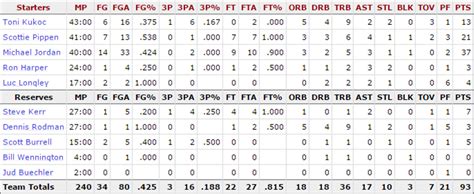 The impact of key players went beyond just points and assists. Jordan’s leadership, Pippen’s versatility, Rodman’s tenacity – these elements shaped the game’s narrative. Their performances weren’t just about the numbers; they were about the heart, the grit, and the determination to win. Every player’s performance was essential in determining the outcome of the game. For the Bulls, it was a testament to teamwork, resilience, and the relentless pursuit of victory. For the Jazz, it was a hard-fought battle that ended just short of their ultimate goal. When analyzing the box score, it’s essential to consider not only the stats but also the impact each player had on the game. Their contribution goes beyond simple numbers; they represent their willingness to go above and beyond for their team. It’s safe to say that the players on both sides gave it their all, creating a matchup that basketball fans will remember forever.