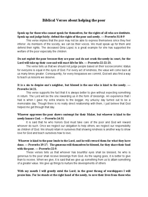 From the Old Testament all the way to the New, the message is crystal clear: God cares deeply about the poor, and so should we. Think about the Law given to Moses. There were specific instructions about gleaning laws, meaning when you harvest your fields, you leave some behind for the poor and the stranger to gather. It wasn’t about charity in the way we might think of it today with organized handouts, but rather about building a society where the vulnerable were inherently cared for through the very structure of life. Deuteronomy 24:19-22 is a powerful passage, reminding us that just as God provided for the Israelites in Egypt, they were to remember and provide for the less fortunate among them. It’s a cycle of remembrance and provision. This wasn’t a one-off thing; it was woven into the fabric of their daily lives and agricultural practices. The festivals, too, had a component of sharing and ensuring that everyone, including the Levites (who had no land inheritance), widows, and orphans, was included. The prophets, like Isaiah and Amos, were fiercely vocal about injustice and the neglect of the poor. They condemned those who oppressed the needy and amassed wealth at the expense of others. Amos, for instance, directly calls out those who ‘trample on the poor and… exact taxes from them’ ( Amos 5:11 ). The prophets acted as the conscience of the nation, reminding them of God’s heart and the consequences of ignoring His commands regarding the poor. They emphasized that true worship wasn’t just about sacrifices and rituals but about ‘justice roll down like waters, and righteousness like an ever-flowing stream’ ( Amos 5:24 ). This imagery is so potent – justice and righteousness should be as natural and abundant as water. It speaks to a deep, systemic concern for the well-being of the marginalized. Even in the seemingly harsh laws about debt and slavery, there were built-in provisions for release and relief, like the Year of Jubilee. This wasn’t just about economic policy; it was a spiritual mandate rooted in God’s character. It’s all about reflecting His mercy and justice in our own communities. So, when we read these passages, we’re not just reading ancient history; we’re getting a divine blueprint for how a just and compassionate society should function. God’s concern isn’t superficial; it’s profound and foundational to His covenant with His people. He wants us to look out for those who have less, not out of obligation alone, but because it reflects His own loving and generous nature. It’s a call to action that resonates through every page of scripture, urging us to move beyond ourselves and engage with the needs of others, especially the most vulnerable among us. The Bible constantly presents us with a choice: will we be like the Good Samaritan, or will we pass by on the other side? The answer, according to scripture, is clear.