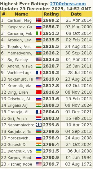Famous Players Who Achieved a 2700+ Rating