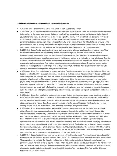 This isn’t just about giving orders; it’s about building understanding and buy-in. Powell believed in making sure everyone on his team, from the lowest-ranking soldier to the highest-ranking official, understood the mission, their role in it, and the bigger picture. This clarity eliminates confusion, reduces errors, and fosters a sense of shared purpose. Think about it, guys: how many times have you seen a project go off the rails because people weren’t on the same page? Powell’s approach was designed to prevent exactly that. He emphasized the importance of the why behind every action. When people understand the reason for their tasks, they are more likely to be engaged, motivated, and innovative. They don’t just become automatons executing orders; they become active participants invested in the success of the mission. His communication style was also characterized by its directness and honesty. He didn’t sugarcoat things, but he delivered his messages with respect and a genuine concern for those he was leading. This created an environment of trust, where people felt valued and heard. He also understood the importance of listening. True communication is a two-way street, and Powell was known to solicit feedback and different perspectives. This not only improved decision-making but also empowered his team members, making them feel like their contributions mattered. In essence, Powell’s communication strategy was about building bridges of understanding, ensuring that everyone was moving in the same direction, and doing so with a shared sense of purpose and commitment. It’s a leadership principle that remains incredibly relevant today, transcending military ranks and corporate ladders. Effective leadership hinges on your ability to convey your message clearly and compellingly, ensuring everyone understands the mission and their part in achieving it. This focus on clarity, purpose, and mutual understanding is a cornerstone of his enduring leadership philosophy. We can all learn a lot from his masterful approach to ensuring everyone is on the same page, fostering an environment where objectives are met with precision and dedication because the path forward is illuminated for all.