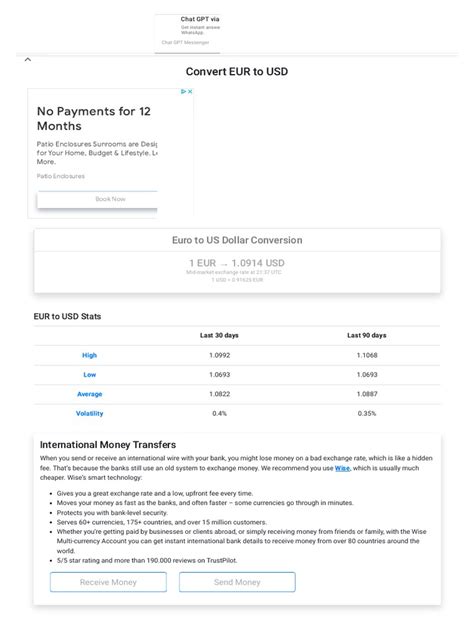 Okay, so we know how to convert and why the rates change, but where do you actually get the most accurate, up-to-the-minute rate for your 89.90 Euros to Dollars conversion? This is super important, guys, because as we’ve seen, even small differences matter. The best place to start is usually online. Reputable financial news websites are your best bet. Think Bloomberg, Reuters, The Wall Street Journal, or the Financial Times . These sites often have dedicated market sections with live currency tickers that update in real-time. You can simply search for “EUR to USD” on their sites, and you’ll get the current mid-market rate. Another fantastic resource is Google itself! Just type in “89.90 EUR to USD” or “Euro to Dollar exchange rate” into the search bar, and Google will usually display a live conversion powered by financial data providers. It’s quick, easy, and generally very reliable for a snapshot. For those who need more frequent updates or want to track trends, there are specialized currency converter websites and apps . Popular options include XE.com, OANDA, and Wise (formerly TransferWise). These platforms not only give you live rates but often provide historical data, charts, and even alerts for when the rate reaches a certain level you’re targeting. If you’re planning to exchange money or make a transfer, your bank’s website might offer an exchange rate, but be cautious. Banks often add a significant markup (spread) on top of the mid-market rate, so the rate you see might not be the rate you actually get. You might need to log in to your online banking to see the specific rates they offer for transactions. Similarly, currency exchange kiosks at airports or in tourist areas usually have the least favorable rates due to high overhead costs and convenience charges. For a simple conversion of 89.90 Euros to Dollars , using a free online converter or a quick Google search is usually sufficient and gives you the most transparent, mid-market rate. Just make sure the source specifies that it’s a live or real-time rate. Avoid sites that only show slightly delayed data or don’t specify their source, as this could lead to an inaccurate conversion for your 89.90 EUR.