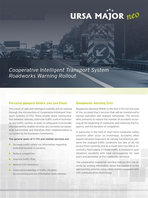 • Improved Safety: By providing drivers with timely warnings about potential hazards, C-ITS can help prevent accidents and save lives.