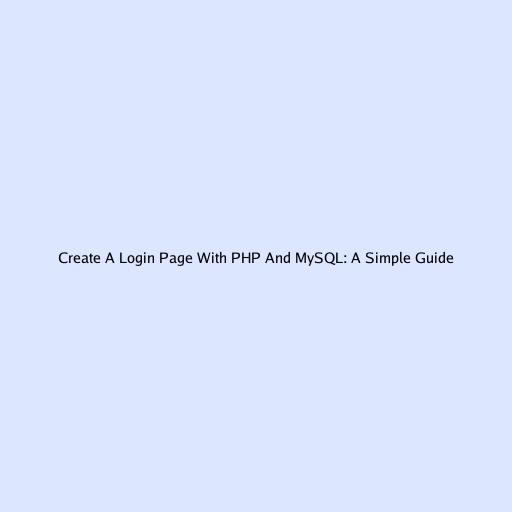 Create A Login Page With PHP And MySQL: A Simple Guide