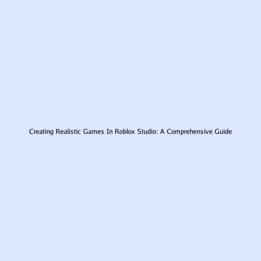 Creating Realistic Games In Roblox Studio: A Comprehensive Guide