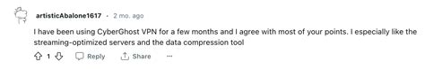 So, what are people loving about CyberGhost on Reddit? Here’s a rundown of the positive points frequently mentioned:
