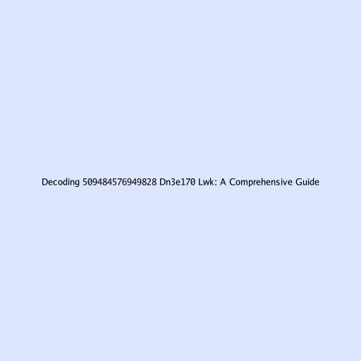 Decoding 509484576949828 Dn3e170 Lwk: A Comprehensive Guide