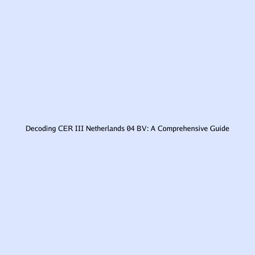 Decoding CER III Netherlands 04 BV: A Comprehensive Guide