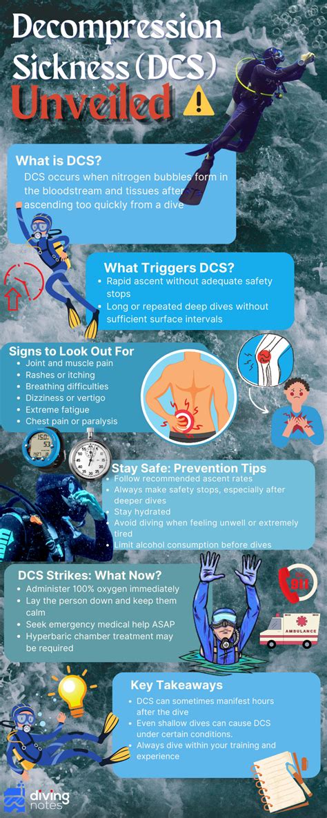 So, we’ve touched upon the bubbles and the science, but did you know that Decompression Sickness isn’t just one thing? It actually comes in different flavors, and recognizing the signs is absolutely crucial for any diver. Generally, DCI is categorized into two main types: Type I and Type II. Type I Decompression Sickness , often called the ‘mild’ form, typically involves pain, particularly in the joints – think knees, shoulders, and elbows. This is the classic ‘bends’ that most divers associate with DCI. You might also experience some skin symptoms, like itching or a rash. While seemingly less severe than Type II, Type I DCI should never be ignored. Joint pain can be debilitating and is a clear signal that something is wrong. Type II Decompression Sickness , on the other hand, is the more serious, potentially life-threatening form. This type affects the central nervous system (your brain and spinal cord) and the cardiopulmonary system (heart and lungs). Symptoms can be quite dramatic and include dizziness, nausea, shortness of breath, chest pain, confusion, paralysis, and even unconsciousness. If you or your buddy experience any of these symptoms after a dive, it’s a full-blown emergency. It’s vital to remember that symptoms can manifest immediately after surfacing, or they can be delayed, appearing hours or even a day or two later. This delayed onset is why it’s so important to be vigilant and monitor yourself and your dive buddies for any unusual feelings or changes in behavior, even after you’re back on dry land. Don’t brush off that weird headache or slight numbness – it could be your body telling you it needs urgent attention. Understanding these different types and being aware of the wide range of potential symptoms is your first line of defense in recognizing and responding to DCI effectively.