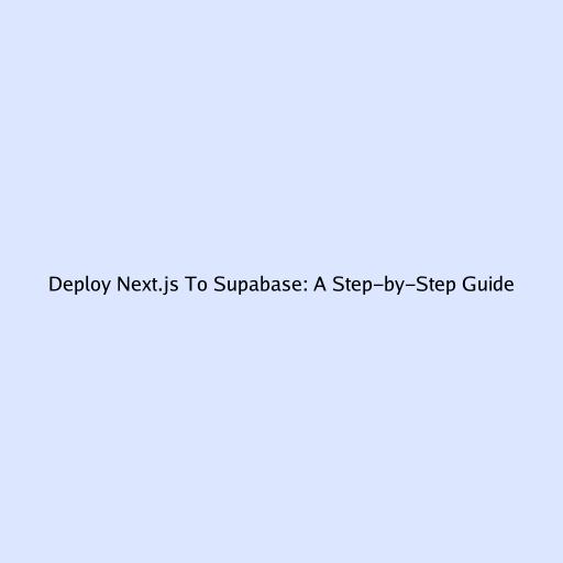 Deploy Next.js To Supabase: A Step-by-Step Guide
