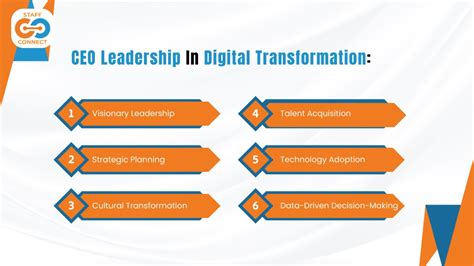 • Setting the Vision and Strategy: The CEO needs to define the company’s digital transformation goals and create a clear roadmap for achieving them. This includes identifying key initiatives, setting priorities, and allocating resources. They need to understand what needs to be changed and plan the best way to do so. This also involves understanding the market and the competition. The CEO must be aware of the latest trends in technology and how they can be used to improve the company’s performance.
