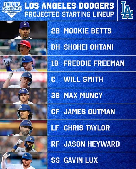 This is just an example, and the actual lineup could be different. However, it gives you a good idea of how the Dodgers might approach the game.