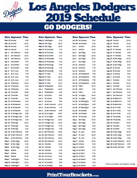 Moreover, having a printable schedule is a fantastic way to stay organized. You can stick it on your fridge, in your office, or even in your car. It’s a quick and easy reference that doesn’t require you to pull out your phone or tablet every time you want to check the game time. A printable Dodgers schedule ensures you’re always in the loop, no matter where you are.