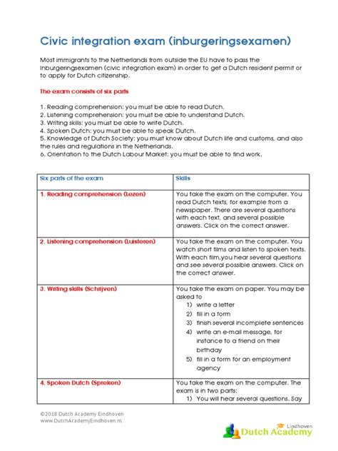 Beyond the language skills, the Knowledge of Dutch Society (KNM) module is a crucial part of the Dutch integration exam A2 . This section isn’t about your fluency; it’s about understanding how things work in the Netherlands. It tests your awareness of Dutch norms, values, laws, and institutions. Think of it as learning the ‘rules of the game’ for living in this country. You’ll be tested on topics like the Dutch political system, healthcare, education, housing, and employment. You’ll also learn about important Dutch cultural aspects and social customs. This knowledge helps you integrate better and avoid misunderstandings. The material for KNM is usually provided by the government, often through specific study materials or online resources. It’s vital to go through these thoroughly. Don’t just memorize facts; try to understand the context and the ‘why’ behind them. For instance, understanding the importance of direct communication in Dutch culture can prevent awkward situations. You might be asked questions like: ‘What do you do if you are sick?’ or ‘How do you find a doctor?’ The questions are designed to see if you can apply your knowledge to practical, everyday situations. Many people find the KNM part a bit different from typical language exams, as it requires learning new information about a country. So, make sure you allocate enough time to study this. It’s not just about passing the exam; it’s about becoming a more informed and integrated resident. The better you understand Dutch society, the more confident and comfortable you’ll feel living here. So, dive into the KNM materials with curiosity and an open mind – it’s a fascinating part of the Dutch integration exam A2 journey!