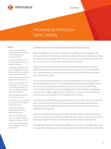 These benefits are often highlighted in an enterprise data catalog PDF , providing a clear business case for investing in this technology. By quantifying the potential benefits, organizations can justify the cost of implementing a data catalog and secure the necessary resources. In addition to these tangible benefits, an enterprise data catalog can also drive innovation by enabling users to explore data in new ways and uncover hidden patterns. This can lead to the development of new products and services, as well as improvements to existing business processes. By empowering users to leverage data more effectively, an enterprise data catalog can help organizations stay ahead of the competition and achieve their business goals. Ultimately, the value of an enterprise data catalog lies in its ability to transform data into a strategic asset, driving better decision-making, improved business outcomes, and increased competitive advantage.