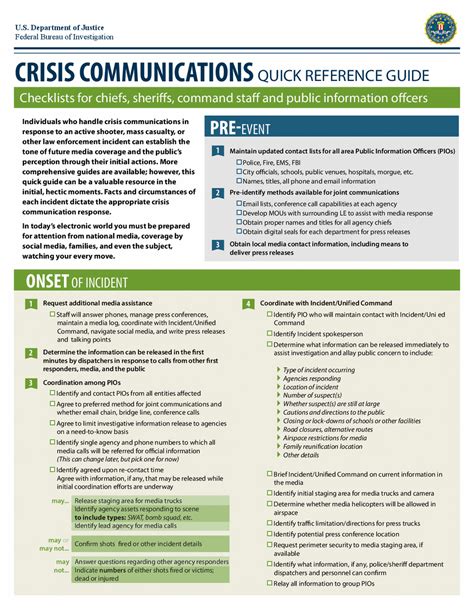 So, how does the FBI actually do crisis communications ? What are the practical tools and tactics they deploy when the chips are down? Let’s break it down. One of the most visible tactics is the press conference or media briefing . When a significant event occurs, the FBI will often convene journalists to provide official updates. These aren’t just random Q&A sessions; they are carefully orchestrated events where spokespersons deliver prepared statements, often backed by visual aids or evidence, and then take questions from the media. The goal is to control the initial flow of information and set the record straight. We’ve all seen these on the news, right? Another critical tool is the official FBI website and social media channels . Platforms like Twitter, Facebook, and the FBI.gov website serve as direct lines of communication to the public. They can rapidly disseminate official statements, public safety alerts, wanted posters, and updates on ongoing investigations. During a crisis, these channels become essential for combating misinformation and providing verified information directly to millions of people. Think about how quickly news spreads on Twitter; the FBI uses this to their advantage. Joint Information Centers (JICs) are vital for coordinating communication efforts, especially in large-scale incidents involving multiple agencies. A JIC brings together public information officers (PIOs) from different organizations into one central location to ensure consistent messaging and efficient information sharing. This prevents conflicting reports and streamlines communication across the entire response effort. It’s all about speaking with one voice. Victim notification systems and resources are also a key component. The FBI isn’t just communicating with the media and the general public; they have specific protocols and systems in place to directly reach out to victims and their families, offering support, information, and guidance. This is a more personal and sensitive aspect of crisis communication, requiring empathy and clear, actionable advice. Rumor control hotlines and online fact-checking initiatives are employed to actively monitor and address misinformation. By setting up dedicated lines or utilizing social media to debunk false claims, the FBI can help clear up confusion and prevent the spread of dangerous rumors that could impact public safety or the integrity of an investigation. Public service announcements (PSAs) , often delivered through television, radio, and online platforms, are used to educate the public about specific threats, safety measures, or how to report suspicious activity. These are crafted to be accessible and memorable. Finally, building and maintaining relationships with key stakeholders – including community leaders, elected officials, and media outlets – is an ongoing, proactive tactic. These established relationships facilitate smoother communication during a crisis because there’s already a foundation of trust and understanding. It’s about preparing the ground before the storm hits. These tools and tactics, when used effectively, allow the FBI to manage the complex flow of information during critical events, aiming to protect lives, uphold justice, and maintain public confidence.