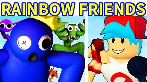 First off, let’s talk about what makes the Rainbow Friends so darn intriguing. For those of you who might be new to this, the Rainbow Friends is a survival horror game on Roblox where you’re trapped in a mysterious location with some, shall we say, unfriendly rainbow-colored monsters. Each night, you have to complete specific tasks while avoiding these creatures, each with their own unique hunting style. It’s a game that’s full of suspense, jump scares, and a whole lot of colorful chaos. Now, imagine all of that, but instead of running and hiding, you’re hitting beats and dodging arrows! That’s the core of what this FNF mod brings to the table. The mod cleverly adapts the Rainbow Friends’ aesthetic and characters, injecting them into the familiar FNF gameplay. You’ll find yourself facing off against Blue, Green, Orange, and maybe even some other surprise characters in rhythm battles. The mod creators have done a fantastic job of capturing the essence of the game, from the character designs to the overall spooky atmosphere. The music is where this mod truly shines. The songs are original compositions inspired by the Rainbow Friends’ universe, blending catchy melodies with intense, fast-paced rhythms that will keep you on your toes. If you’re looking to challenge your FNF skills while enjoying a fresh, creative take on the game, this mod is a must-try. The visual style of the mod is also worth mentioning. The vibrant colors and distinct character designs of the Rainbow Friends are faithfully recreated, and the background environments are well-themed to fit the game’s setting. The animations are smooth, and the overall presentation is top-notch. It’s clear that a lot of love and effort went into creating this mod, and it shows.