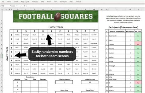 By following these tips, you can ensure that your football squares game is a fun and enjoyable experience for everyone involved. So gather your friends, fire up your Excel template, and get ready for some gridiron excitement!