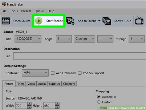 Once you’ve selected your source, output format, chosen a preset, and set your destination, you’re ready to go! Look for the green “Start Encode” button at the top of the HandBrake window. Click it, and HandBrake will begin converting your VOB file(s) to MP4. The time this takes will depend on the length and quality of the video, your computer’s processing power, and the preset you selected. You’ll see a progress bar at the bottom of the HandBrake window.
