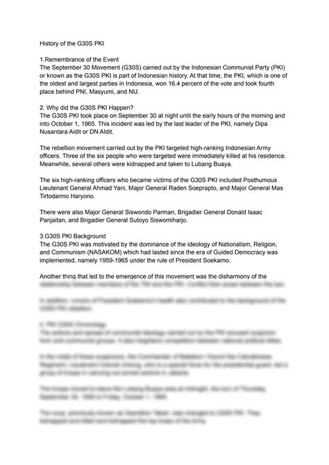 Another area of debate is the involvement of foreign powers. Some theories suggest that the United States or other external actors may have played a role in the G30S affair, either directly or indirectly. Declassified documents have revealed that the US government was actively monitoring the situation in Indonesia and was concerned about the rise of the PKI . However, the extent of their involvement in the G30S event remains a subject of speculation and debate.