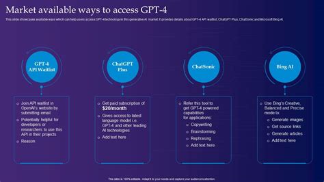 Alright, so you’re probably wondering, “How do I actually use this thing?” Getting GPT-4 online is easier than you might think, guys. The primary way most people get access is through OpenAI’s own platforms. The most direct route is often via ChatGPT Plus. If you subscribe to ChatGPT Plus, you get priority access to GPT-4, meaning you can use it even when demand is high, and you get access to the latest features. It’s a fantastic way to experience the full might of GPT-4 for a monthly fee. Think of it as your all-access pass to the coolest AI tech out there. Another significant avenue is through the OpenAI API. This is where developers and businesses come in. If you’re building applications, websites, or services that need a powerful AI brain, you can integrate GPT-4 directly into your projects using the API. This requires a bit more technical know-how, but it opens up a universe of custom applications. Imagine creating your own AI-powered chatbot, a personalized content generator, or an advanced data analysis tool. The API makes it possible. Beyond OpenAI’s direct offerings, you’ll find GPT-4 powering various third-party applications and services. Many companies are integrating GPT-4 into their products to offer enhanced features. This could be anything from writing assistants and customer service bots to educational tools and creative software. So, keep an eye out for services that explicitly mention using GPT-4; they’re likely offering a top-tier AI experience. It’s worth noting that access methods and availability can evolve, so it’s always a good idea to check OpenAI’s official website for the most up-to-date information on how to get started. The key takeaway is that whether you’re a casual user looking for a smarter chatbot experience or a developer wanting to build the next big AI innovation, there are pathways to leverage GPT-4 online. The barrier to entry is lower than ever, making this powerful technology accessible to a broad audience eager to explore its potential and integrate it into their digital lives.