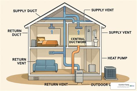 This technology is based on the principles of refrigeration . A refrigerant circulates through the system, absorbing heat and releasing it at different points. The main components of a heat pump system include an outdoor unit (the heat pump itself), an indoor unit (often an air handler or furnace), and ductwork to distribute the heated or cooled air throughout your home. A heat pump central heating system diagram visually represents these components and their interconnections, making it easier to understand how the system works. These diagrams typically show the flow of refrigerant, the electrical connections, and the layout of the ductwork.