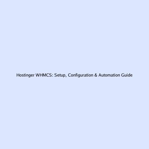 Hostinger WHMCS: Setup, Configuration & Automation Guide