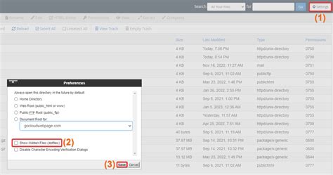 3. Locate the .htaccess file. This file is usually located in the root directory of your website (e.g., public_html ). If you don’t see it, make sure to enable the option to show hidden files. In the File Manager settings, look for “Show Hidden Files (dotfiles)” and check the box.