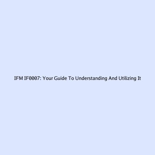 IFM IF0007: Your Guide To Understanding And Utilizing It