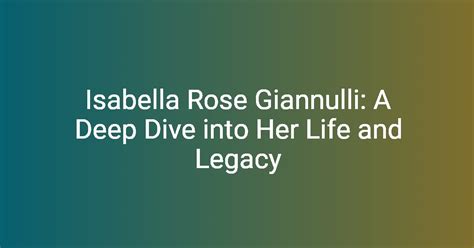 In conclusion, Isabella Lorusso stands out as a remarkable figure in the art world, celebrated for her distinctive style, thematic richness, and lasting impact. Her journey from early influences to her current status as a critically acclaimed artist is a testament to her dedication and unique vision. Through her masterful use of [reiterate key elements of her style] and her profound exploration of themes such as [reiterate key themes], Lorusso offers viewers a powerful and often moving experience. Her contribution extends beyond individual artworks; she has inspired a generation of artists and enriched cultural discourse. As we look to the future, the anticipation for what Isabella Lorusso will create next is palpable, promising continued innovation and engagement. Her legacy is firmly established, and her ongoing artistic exploration ensures her continued relevance and significance. Whether you are encountering her work for the first time or are a long-time admirer, there is always something new to discover and appreciate in the captivating world of Isabella Lorusso.