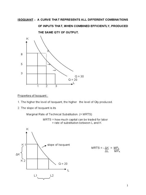 The shape of an isoquant is usually bowed inward towards the origin due to the concept of the marginal rate of technical substitution (MRTS) . The MRTS represents the rate at which a company can substitute one input for another while keeping output constant. Think of it like this: as you increase one input (e.g., labor) and decrease another (e.g., capital), the MRTS tells you how much of the second input you can give up while still producing the same amount of output. The isoquant’s shape also depends on the production function, which dictates how inputs are transformed into output. For example, a production function with perfect substitutes would result in a straight-line isoquant, while a production function with fixed proportions would result in an L-shaped isoquant.