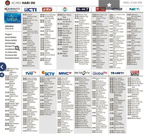Membaca jadwal TV itu gampang banget, guys! Biasanya, jadwal TV itu disajikan dalam bentuk tabel yang simpel. Di bagian atas tabel, kalian bakal nemuin nama-nama stasiun TV yang berbeda, misalnya RCTI, SCTV, Trans TV, Indosiar, dan lain-lain. Nah, di samping kiri tabel, biasanya ada kolom waktu, mulai dari jam 00:00 (tengah malam) sampai 23:59 (menjelang tengah malam). Di setiap kotak persimpangan antara nama stasiun TV dan waktu, bakal ada tulisan judul acara yang tayang pada jam tersebut. Misalnya, di baris Trans TV jam 08:00 pagi, mungkin tertulis “Pagi-Pagi Ambyar”. Atau di baris SCTV jam 21:00 malam, bisa jadi tertulis “Sinetron Unggulan”. Jadwal TV juga seringkali mencantumkan kategori acara, seperti Berita, Olahraga, Film, Sinetron, Komedi, Anak-anak, atau Musik. Ini penting banget biar kalian bisa langsung scrolling ke bagian yang kalian minati. Kadang, ada juga keterangan tambahan, misalnya “LIVE” kalau acaranya siaran langsung, atau “PREMIERE” kalau itu tayangan perdana. Penting banget buat merhatiin jam tayangnya, karena acara yang sama bisa aja tayang di jam yang berbeda di stasiun TV yang berbeda. Jadi, sebelum nonton, pastikan kamu udah tau jam berapa dan di channel mana acara kesukaanmu tayang. Kalaupun kamu lupa, jangan panik! Banyak website dan aplikasi yang menyediakan jadwal TV real-time yang bisa kamu cek kapan aja. Cukup cari “jadwal TV hari ini” di mesin pencarian favoritmu, dan boom! Semua informasi yang kamu butuhkan akan tersaji di depan mata. Gak perlu lagi tuh pegang koran atau majalah yang jadwalnya udah kadaluwarsa. Fleksibilitas ini yang bikin nonton jadi makin asyik, kan? Kalian bisa banget atur nonton sesuai mood dan ketersediaan waktu. Jadi, jangan ragu buat eksplorasi jadwal TV di berbagai channel, siapa tau nemu acara baru yang lebih keren lagi!