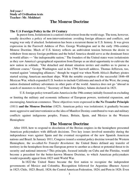 Hey guys, let’s dive into James Monroe and the Monroe Doctrine , a pretty big deal in American history. You might have heard of it, but what exactly was it, and why should we even care? Well, buckle up, because we’re about to break it all down. James Monroe wasn’t just any president; he was the fifth president of the United States, serving from 1817 to 1825. His time in office is often called the “Era of Good Feelings,” and while that sounds super chill, it was also a period of significant foreign policy developments, chief among them being the doctrine that now bears his name. The Monroe Doctrine , proclaimed in 1823, was essentially a statement of U.S. foreign policy that said, “Hey Europe, stay out of our backyard!” It declared that further efforts by European nations to colonize or interfere with states in the Americas would be viewed as acts of aggression, requiring U.S. intervention. Pretty bold, right? Especially considering the U.S. was still a relatively young nation back then. This doctrine wasn’t just a fleeting thought; it shaped American foreign policy for decades and continues to be referenced even today. It was a defining moment for America, signaling its growing assertiveness on the world stage and its determination to protect its interests in the Western Hemisphere. So, when we talk about James Monroe, we’re not just talking about a president; we’re talking about the architect of a policy that would have lasting repercussions.