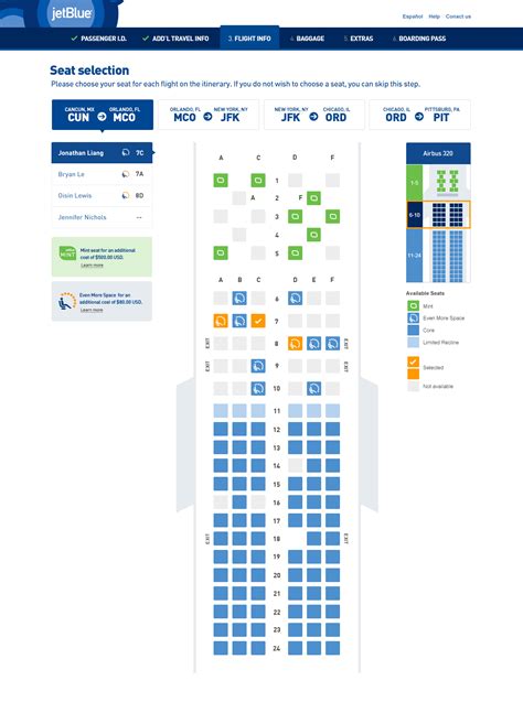 • Here’s the fun part! You’ll see a seat map of the plane. If you haven’t already chosen your seat, now’s your chance. Pick your favorite spot – window, aisle, or emergency exit (if available). Keep in mind that some seats may come with an extra fee.