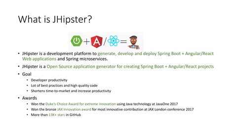 Hey guys, ever felt overwhelmed by the sheer amount of work that goes into building modern web applications? You know, all those frameworks, libraries, and configurations that can tie your brain in knots? Well, buckle up, because today we’re diving deep into JHipster , a seriously awesome tool that’s designed to simplify and accelerate your application development process. If you’ve ever asked yourself, “what is JHipster?”, you’re in the right place. We’re going to break down what makes this generator so powerful and why it should absolutely be in your developer toolkit. Think of JHipster as your friendly neighborhood superhero for app development, swooping in to save you from tedious boilerplate code and common integration headaches. It’s an open-source application generator that streamlines the creation of modern, highly performant, and robust web applications and microservices. It’s built with the intention of giving developers a head start, allowing them to focus more on the unique business logic of their application rather than getting bogged down in setup and configuration. The core idea behind JHipster is to provide a solid, opinionated foundation that follows best practices, enabling you to build applications quickly and efficiently. We’re talking about applications that are ready for production right out of the box, with features like security, monitoring, and scalability already baked in. This means less time spent on the mundane and more time spent on building something truly innovative. So, what exactly are we generating here? JHipster is designed to generate applications using a modern technology stack. On the front-end, you can typically expect technologies like Angular, React, or Vue.js, paired with Bootstrap for styling. On the back-end, it’s commonly Java with Spring Boot, but it also supports other options. This combination provides a powerful, full-stack solution. The magic lies in its ability to generate not just the code, but also the build scripts, the database configuration, the testing setup, and even deployment options. It’s like having a seasoned architect and a tireless construction crew working for you, building the foundational structure of your application while you design the interior and add your personal touches. The goal is to make the development lifecycle smoother, faster, and more enjoyable. Forget spending days or weeks setting up a new project from scratch; with JHipster, you can have a fully functional application skeleton in minutes. This dramatically reduces development time and cost , making it a fantastic choice for startups, small teams, and even large enterprises looking to boost productivity. We’ll get into the nitty-gritty of how it works, what you can build with it, and why it’s such a game-changer in the world of software development.