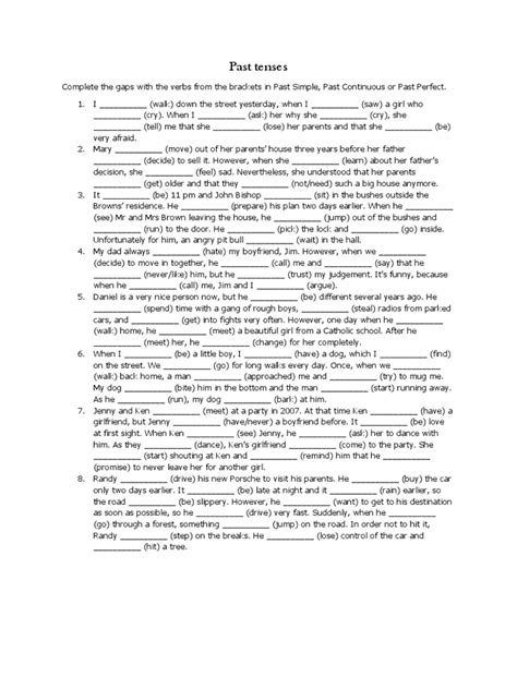 So, why are these tenses so important, and how do they relate? Well, guys, they help us tell stories and describe events in the past with precision. The Past Simple gives us the main events, the completed actions. The Past Continuous sets the scene, describes what was happening, or actions in progress. The Past Perfect clarifies what happened before other past events. Think of it like layers of time. You might use the Past Continuous to describe the background: “The children were playing happily.” Then, something happens in the Past Simple: “Suddenly, a dog appeared .” And perhaps something else had already occurred, established by the Past Perfect: “They had been warned about stray dogs earlier that day.” See how they work together? The worksheet is designed to help you practice these combinations. You’ll find fill-in-the-blanks, sentence unscrambling, and scenario-based questions. Each section focuses on a specific tense or a combination of tenses. For example, one exercise might ask you to choose between Past Simple and Past Continuous: “While I ______ (study), the lights ______ (go out).” The answer would be “was studying” and “went out.” Another might test your understanding of Past Perfect versus Past Simple: “By the time the police arrived, the thief ______ (escape).” The answer: “had escaped.” These exercises are crucial for solidifying your grasp on the nuances of each tense and how they interact. Don’t just fill in the blanks; try to understand why a particular tense is correct in each context. Think about the duration, the completion, and the sequence of actions. This active learning approach will make the practice much more effective. Remember, practice makes perfect, and our free PDF worksheet is your perfect companion on this journey!
