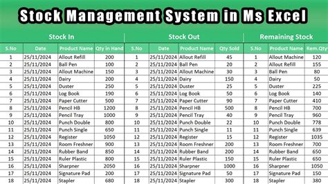 Master Stock Management With Excel