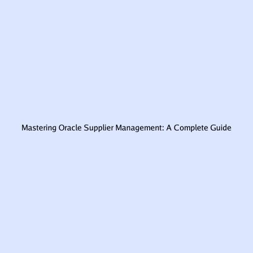 Mastering Oracle Supplier Management: A Complete Guide