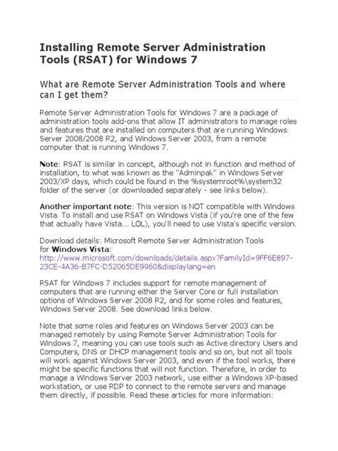 Hey guys, let’s dive deep into the world of Remote Server Administration Tools , or RSAT for short. If you’re in IT, you’ve probably heard of it, and if you haven’t, you’re about to find out why it’s such a game-changer for managing your servers. So, what exactly is this RSAT package, and why should you care? Simply put, RSAT gives you the power to manage Windows servers remotely from your Windows client machine. Think about that for a second. Instead of having to log directly into each server, which can be a hassle, especially when you have a bunch of them, RSAT provides a suite of tools that lets you do most of your administrative tasks from your own workstation. This is a massive productivity boost, folks. It means less time spent physically or virtually accessing servers and more time actually doing the important stuff. We’re talking about managing Active Directory, DNS, DHCP, file shares, event logs, and so much more, all from the comfort of your desk. It’s like having a control panel for your entire server infrastructure right at your fingertips. This article will break down what RSAT is, why it’s essential, how to get it, and how to use some of its most powerful features. Stick around, because understanding and utilizing RSAT can seriously level up your IT game and make your life a whole lot easier. We’ll explore the different components of RSAT, how they integrate with your existing Windows environment, and the benefits it brings to the table for individuals and organizations alike. Get ready to become a remote server management ninja!