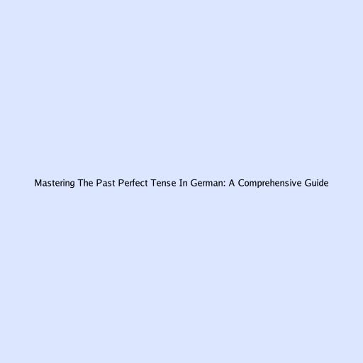 Mastering the Past Perfect Tense in German: A Comprehensive Guide