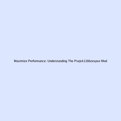 Maximize Performance: Understanding The Psejvk1166zespse Mod