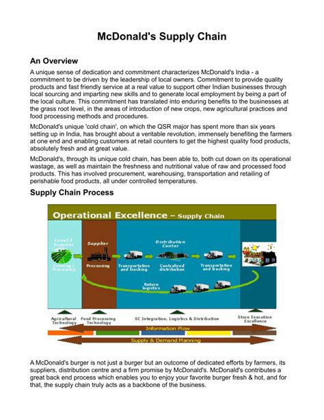 • Improving Efficiency: McDonald’s is constantly looking for ways to improve the efficiency of its supply chain . This includes streamlining processes, optimizing logistics, and leveraging technology.