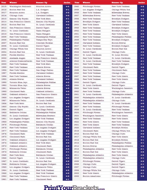 Alright, guys, let’s get down to the nitty-gritty. Here’s a complete list of every World Series winner, from 1903 to the present day. Get ready for a blast from the past!