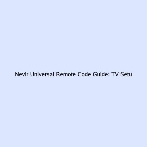 Nevir Universal Remote Code Guide: TV Setup