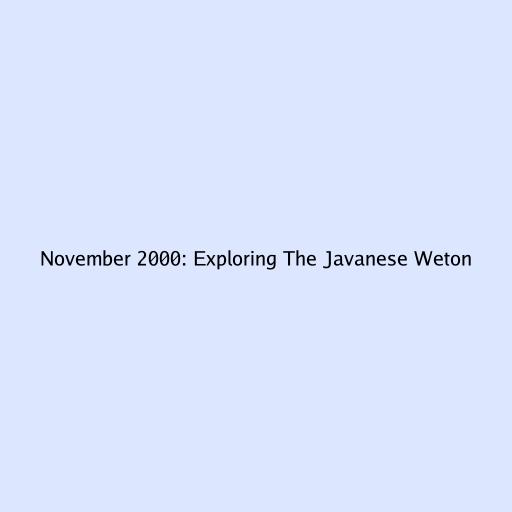 November 2000: Exploring The Javanese Weton