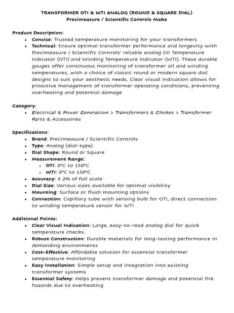 Oil Temperature Indicator (OTI) is your go-to gauge for monitoring the temperature of the oil inside your transformer. Why is this important? Because the oil acts as both a coolant and an insulator. As the transformer works hard, it generates heat, which the oil absorbs. If the oil gets too hot, it can degrade, lose its insulating properties, and potentially cause some serious damage. Therefore, keeping a close eye on the OTI is crucial for maintaining the health and longevity of your transformer. Now, let’s talk about setting those temperature thresholds.
