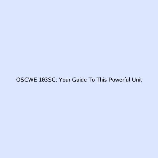 OSCWE 103SC: Your Guide To This Powerful Unit