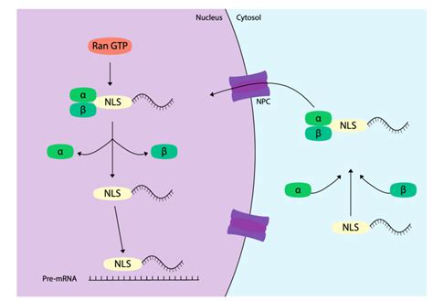 The process begins with the recognition of the NLS by importin proteins. Importins are a family of nuclear transport receptors that bind specifically to NLSs. There are different types of importins, each with a preference for certain NLS sequences. This specificity ensures that only the correct proteins are transported into the nucleus. The binding of importin to the NLS is mediated by electrostatic interactions between the positively charged basic amino acids in the NLS and negatively charged regions on the surface of importin. Once importin binds to the NLS, it forms a complex with the cargo protein. This complex is now ready to be transported through the nuclear pore complex (NPC). The NPC is a large, multi-protein structure that spans the nuclear envelope, creating a channel for the passage of molecules into and out of the nucleus. The NPC is not just a simple hole in the membrane; it is a highly regulated gatekeeper that controls the movement of molecules based on their size and signals. The importin-cargo complex interacts with the NPC through a series of interactions with nucleoporins, the proteins that make up the NPC. These interactions facilitate the movement of the complex through the pore. The exact mechanism of translocation through the NPC is still not fully understood, but it is believed to involve a combination of diffusion and active transport. The process is driven by the concentration gradient of RanGTP, a small GTPase protein that is abundant in the nucleus. Once the importin-cargo complex has passed through the NPC and entered the nucleus, it encounters RanGTP. RanGTP binds to importin, causing it to release the cargo protein. The cargo protein is now free to perform its function in the nucleus, while the importin-RanGTP complex is transported back to the cytoplasm. In the cytoplasm, RanGAP hydrolyzes RanGTP to RanGDP, causing importin to release RanGDP. Importin is now ready to bind to another cargo protein and repeat the cycle. This continuous cycle of import and export ensures that proteins are correctly localized within the cell and that the nucleus can perform its essential functions.