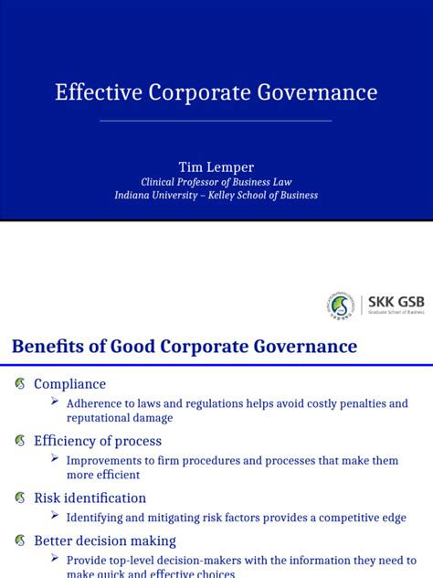 Now, let’s dig deeper. The main pillars that support good corporate governance are pretty straightforward. Transparency is the cornerstone; it means being open about your financials, operations, and any potential risks. Accountability ensures that those in charge are answerable for their actions, and Fairness means treating all stakeholders—investors, employees, and the community—equally. Then there’s Responsibility , which means acting in a way that’s sustainable and considers the long-term impact of your decisions. Together, these pillars form a strong foundation for ethical and effective corporate management. When these elements are in place, they foster a culture of trust and responsibility, which can lead to better decision-making and, ultimately, improve the company’s overall performance. Think of these pillars as the building blocks for a well-managed company, creating a robust framework for everything from financial reporting to risk management and stakeholder engagement. When these pillars are strong, everyone benefits. If you’re a shareholder, you’ll be more confident in your investments knowing that the company is managed ethically and efficiently. This also benefits employees, who can feel more secure in their jobs and have confidence in the company’s direction. The community also benefits as corporations become responsible corporate citizens.